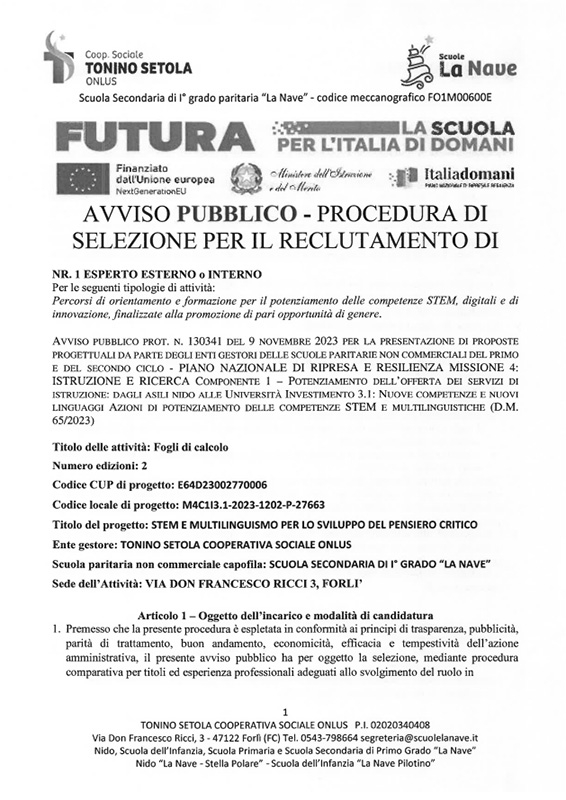 Avviso selezione esperto edizioni STEM 2024 25
