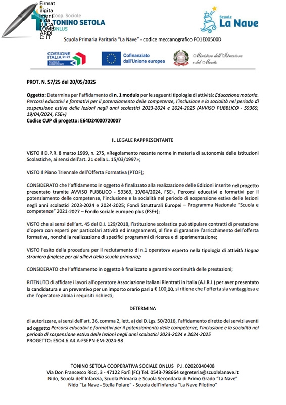 Determina a contrarre Modulo Lingua Piano Estate Signed