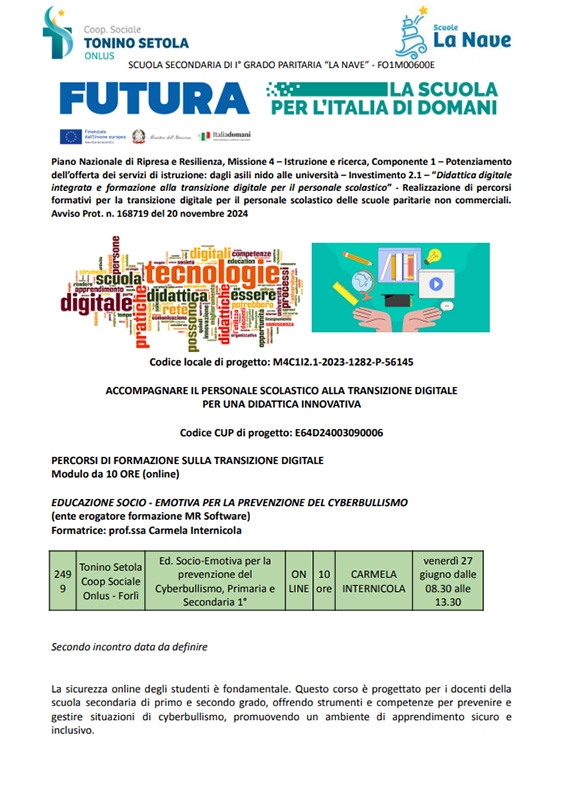 EDUCAZIONE SOCIO EMOTIVA PER LA PREVENZIONE DEL CYBERBULLISMO