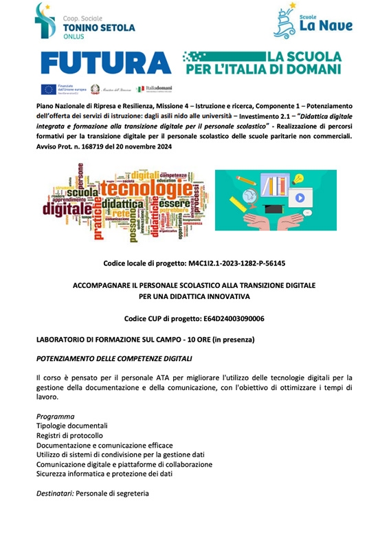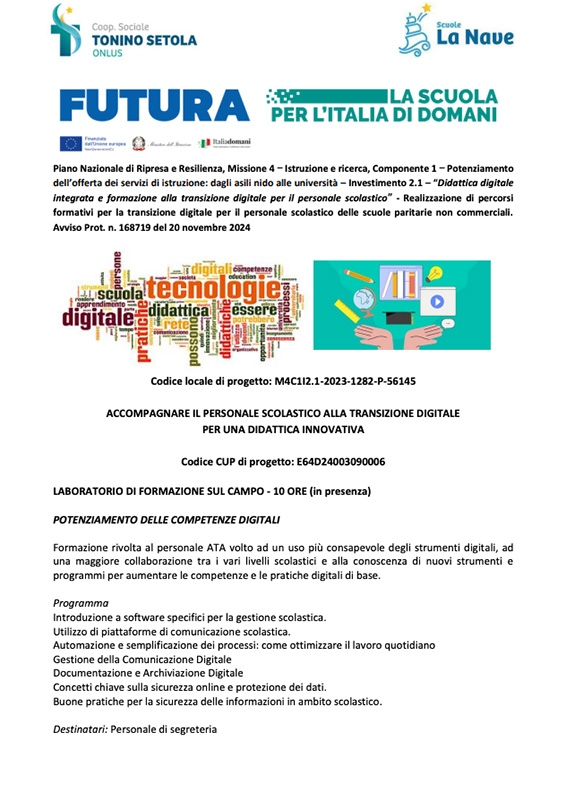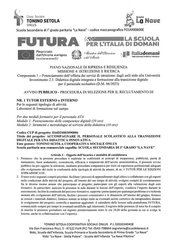 Avviso selezione tutor 2 moduli formazione transizione digitale