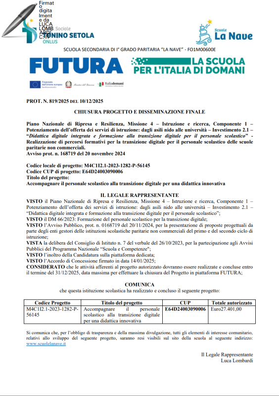 PNRR Transizione Digitale per il personale scolastico - Chiusura e disseminazione