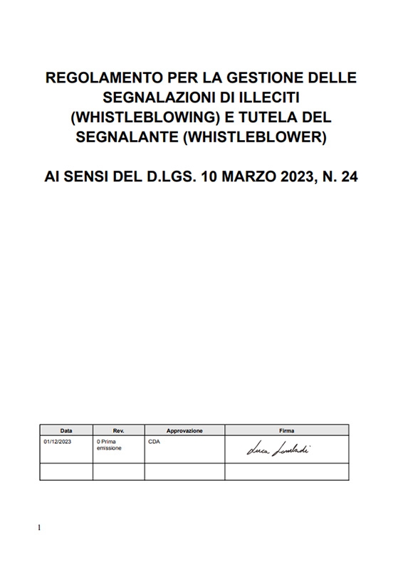 Si precisa che il Regolamento Whistleblowing ha valenza obbligatoria per l’Ente visto il superamento della soglia dei 50 dipendenti, e che le segnalazioni riguardano le violazioni del diritto europeo secondo le tipologie indicate dal decreto 24 del 2023.