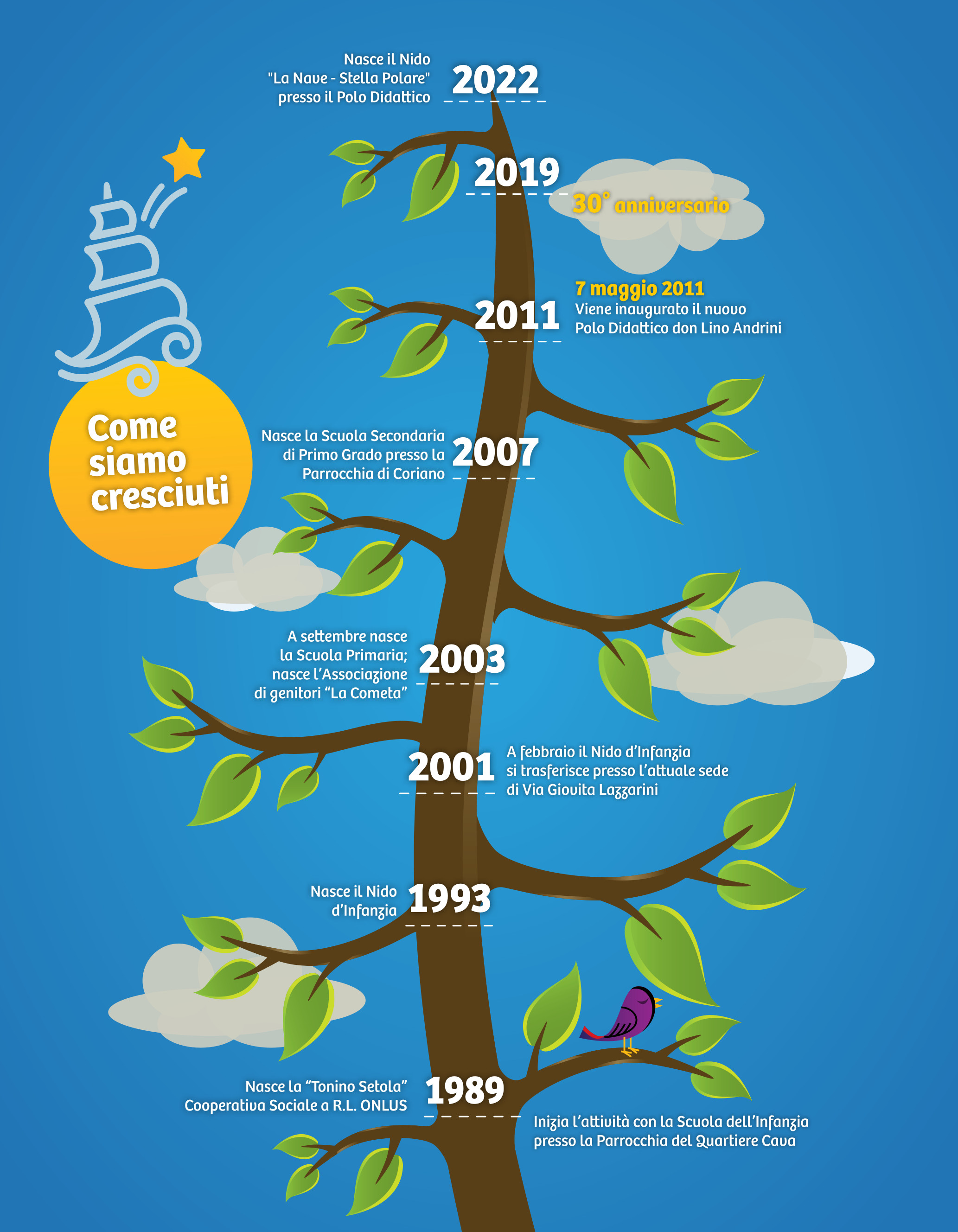 Le Scuole La Nave nascono dalla Tonino Setola Cooperativa Sociale ONLUS, costituita nel 1989 da un gruppo di insegnanti e genitori che credono, oggi più che mai, nell’educazione e nell’insegnamento che viene dalla vita. L’attività della Cooperativa ha avuto inizio con la Scuola dell’Infanzia nel quartiere Cava di Forlì.