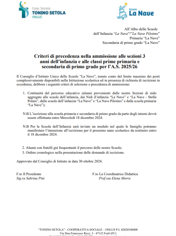 CRITERI DI PRECEDENZA NELL' AMMISSIONE ALLE SEZIONI 3 ANNI-CLASSI PRIME PER LˇA.S. 2025_26