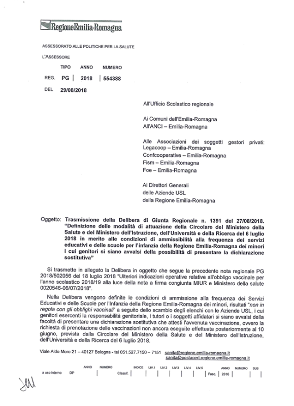 DELIBERA DI GIUNTA REGIONALE N. 1391 DEL 27/08/2018 - OBBLIGO VACCINALE