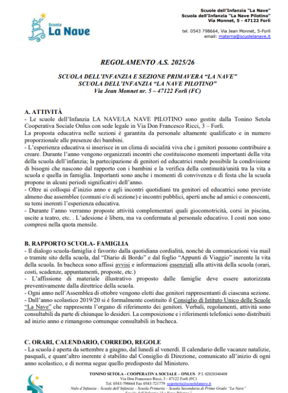 REGOLAMENTO SEZIONE PRIMAVERA LA NAVE 2025-2026