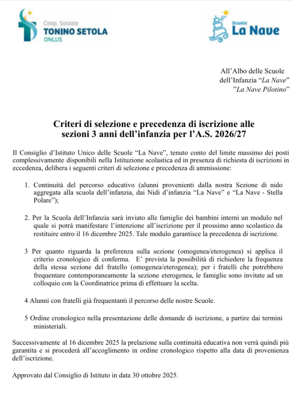 CRITERI DI PRECEDENZA NELL'ISCRIZIONE ALLA SEZIONE 3 ANNI A.S. 2026-2027