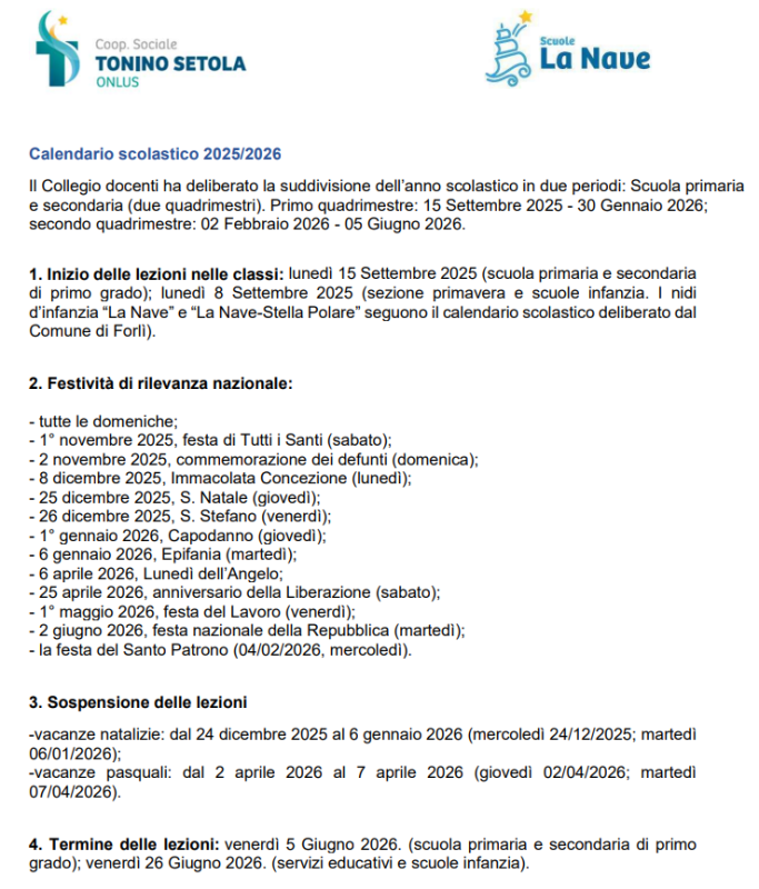 CALENDARIO SCOLASTICO 2025-2026