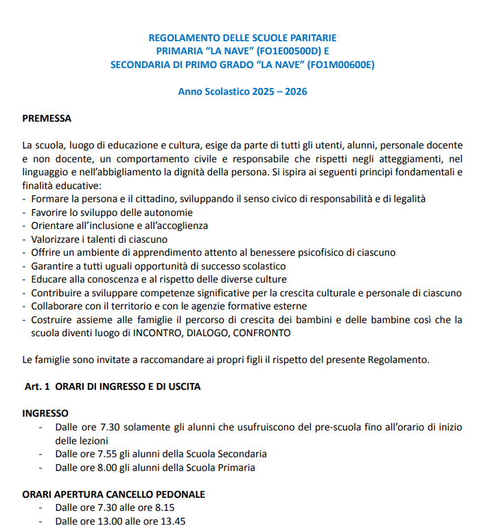 REGOLAMENTO DI ISTITUTO PRIMARIA E SECONDARIA 25-26