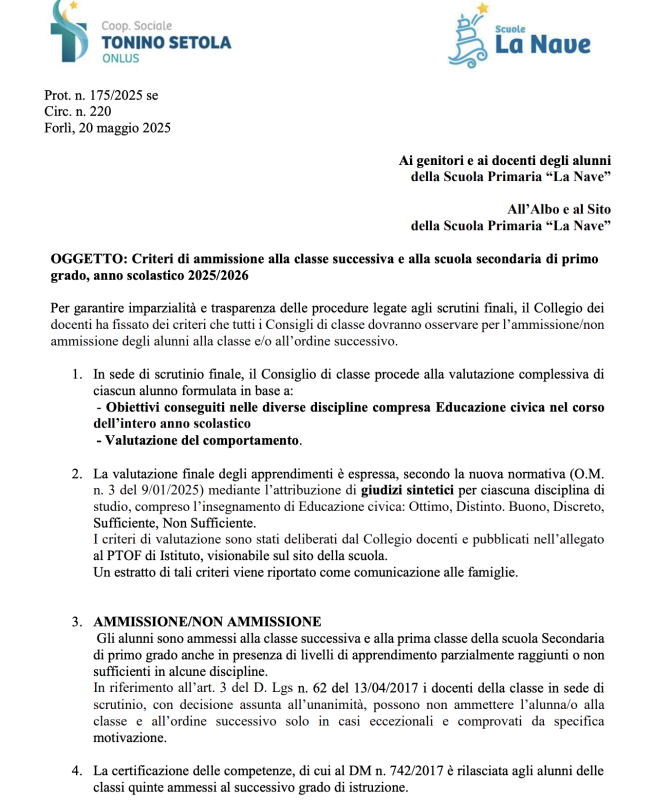 CRITERI DI AMMISSIONE ALLA CLASSE SUCCESSIVA