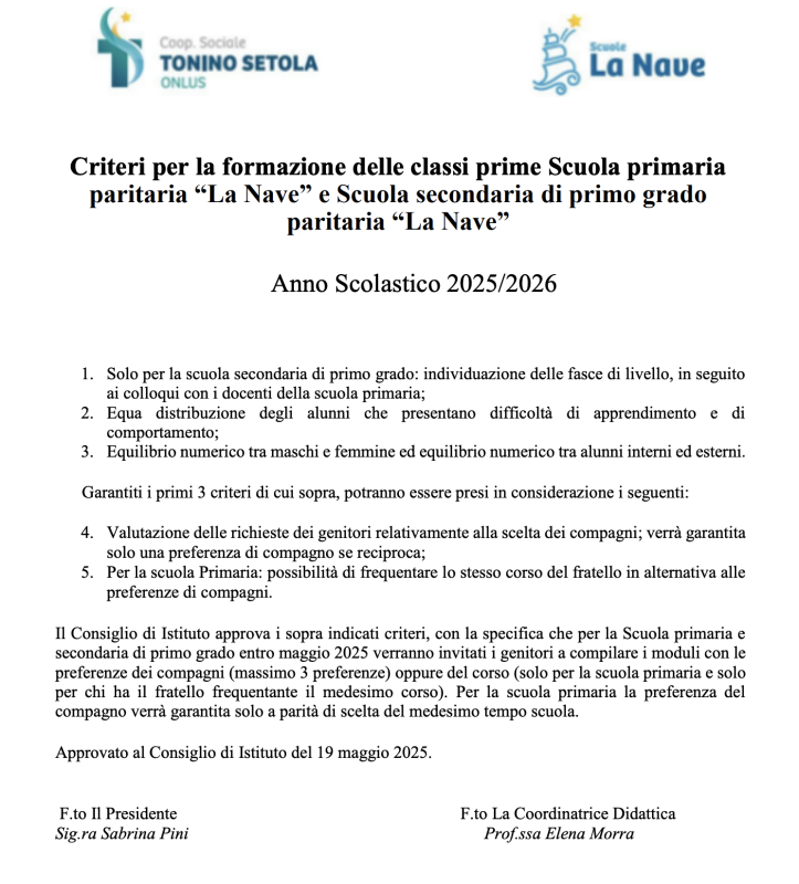CRITERI PER LA FORMAZIONE DELLE CLASSI PRIME 2025-26