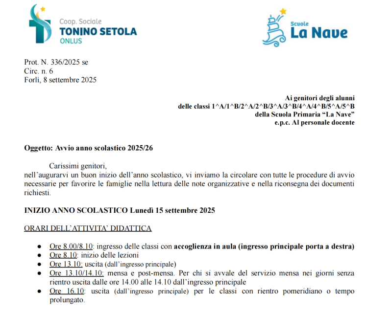 CIRCOLARE AVVIO ANNO SCOLASTICO 25-26