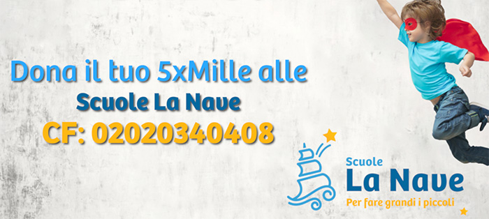 Il 5x1000 infatti non è un'altra tassa da pagare, ma la percentuale delle imposte a cui lo Stato rinuncia per destinarla ad Enti di utilità sociale. Scegliere di destinarla alle Scuole La Nave, quindi, significa permetterci di avere, grazie a te e attraverso uno strumento dello Stato, il sostegno di cui tutti abbiamo bisogno.