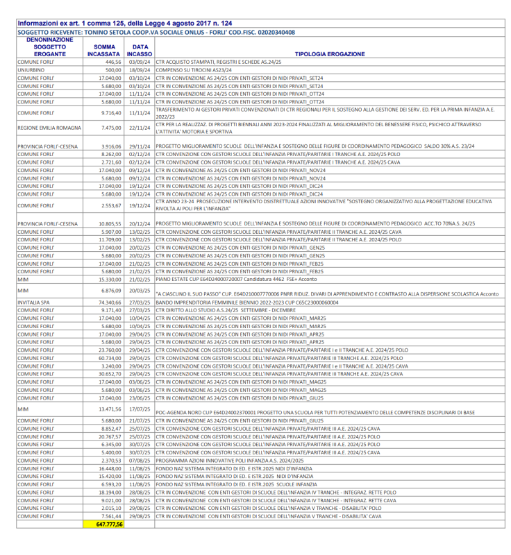 SOGGETTO RICEVENTE: TONINO SETOLA COOP.VA SOCIALE ONLUS - FORLI' COD.FISC. 02020340408.
