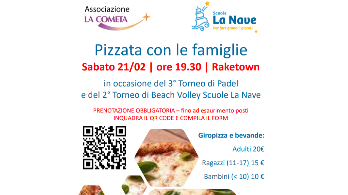 A conclusione della giornata, alle ore 19.30, è prevista per chi lo desidera una pizzata con le famiglie presso Raketown.
