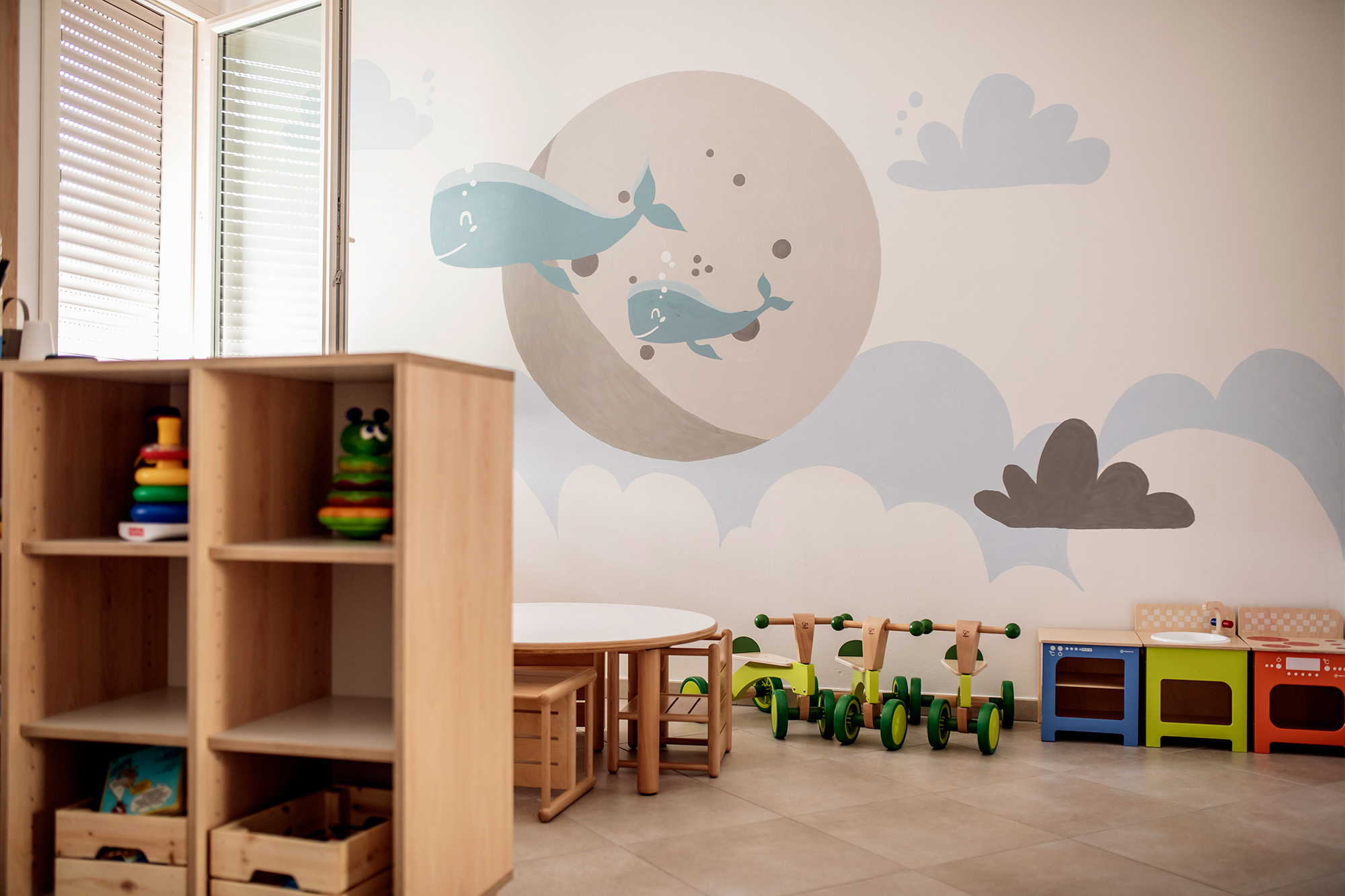 Accoglie 25 bambine e bambini dai 10 mesi ai 3 anni, in due sezioni (quella dei piccoli, dai 10 ai 17 mesi e quella dei medio/grandi, dai 18 ai 36 mesi).