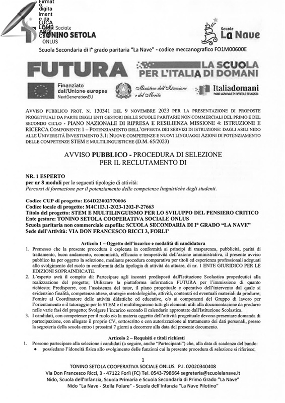- PNRR "Stem e multilinguismo" (DM 65/2023)