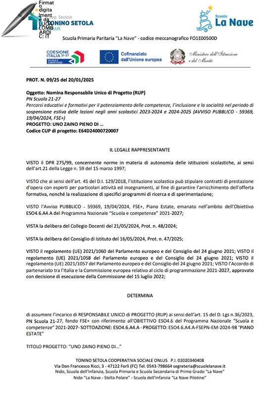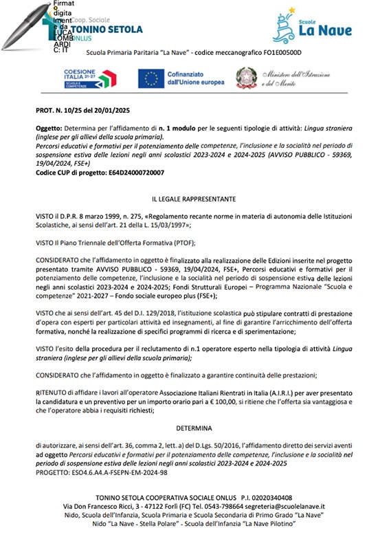 Determina a contrarre Modulo Lingua Piano Estate Signed