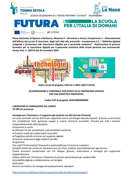 - PNRR "Formazione del personale scolastico" (DM 66/2023)