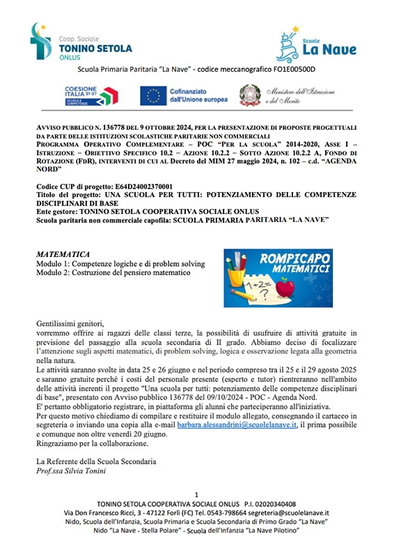 - PN "Piano Estate 2024-2025" (DM 72/2024)