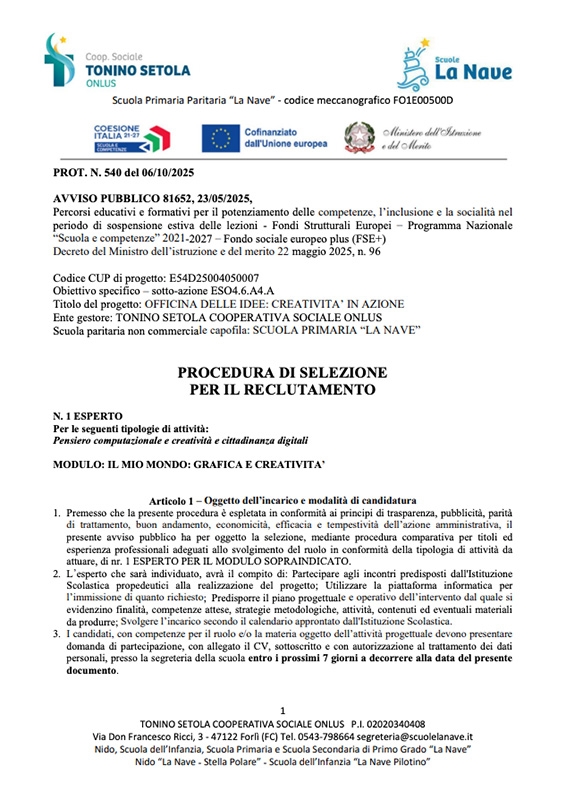 540_2025 sm Avviso selezione Piano Estate Modulo Il mio mondo